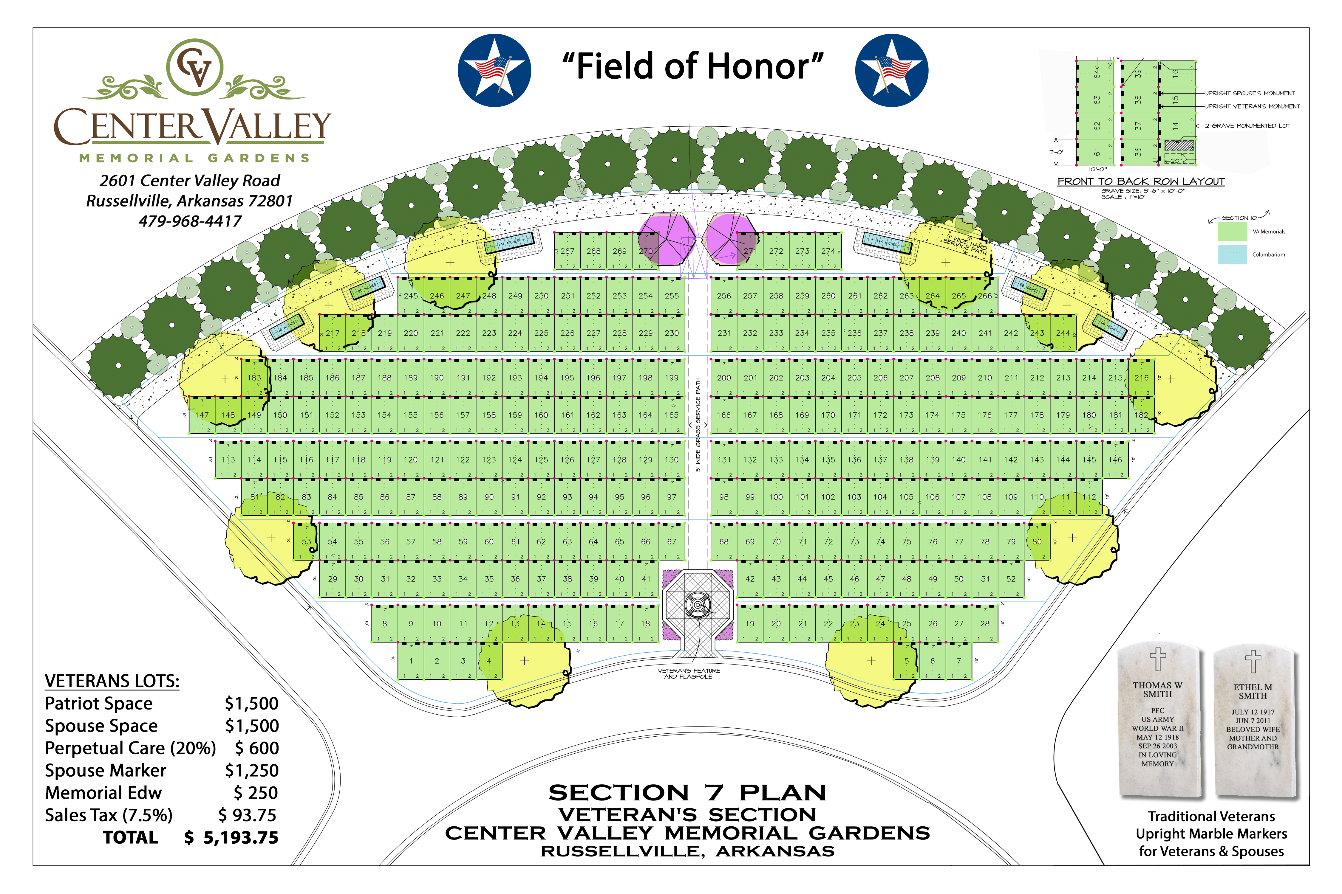 CVMG also includes our exclusive "Field of Honor" for veterans and their spouse. We have a number of options for gravesites from our "Horizon" single spaces to our Family Garden areas which can be designed to your specification including hedged shrubs and walkway.